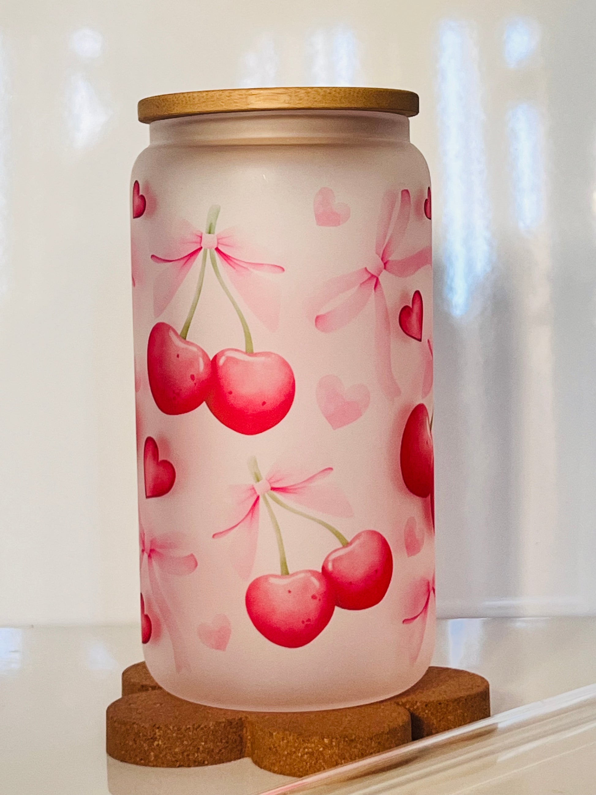 Coquette Cherry Pink Glass Van Tumbler
